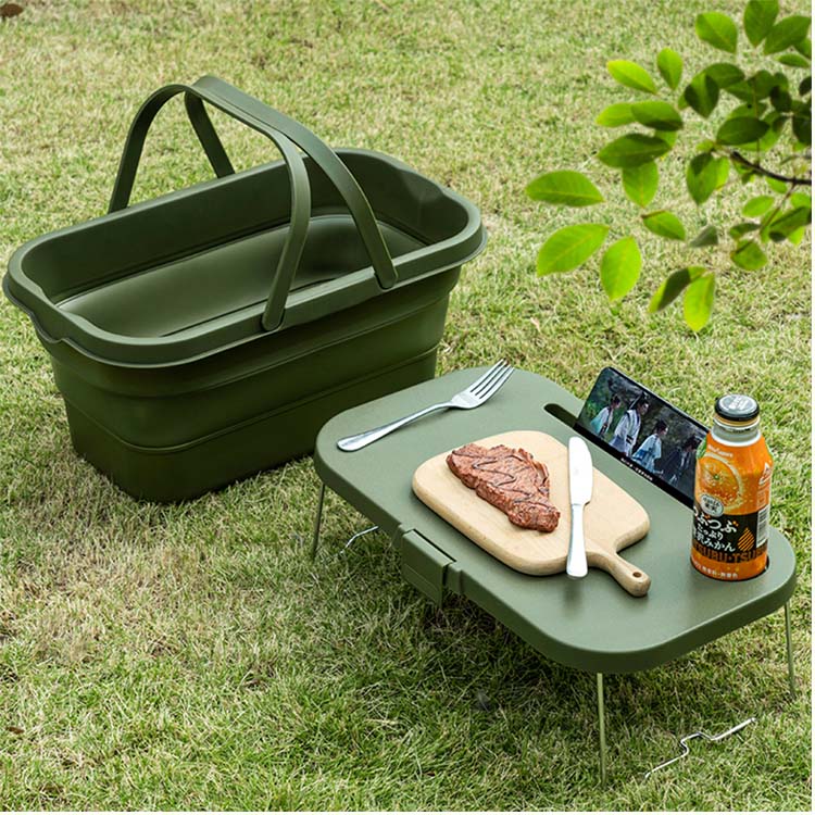 Ang makabagong basket na ito ay nagbabago mula sa isang malalim na lalagyan ng imbakan sa isang patag, matatag na ibabaw ng talahanayan sa mga segundo, na nagbibigay ng parehong organisadong imbakan at isang maginhawang paghahatid/pagkain platform para sa mga panlabas na aktibidad.
