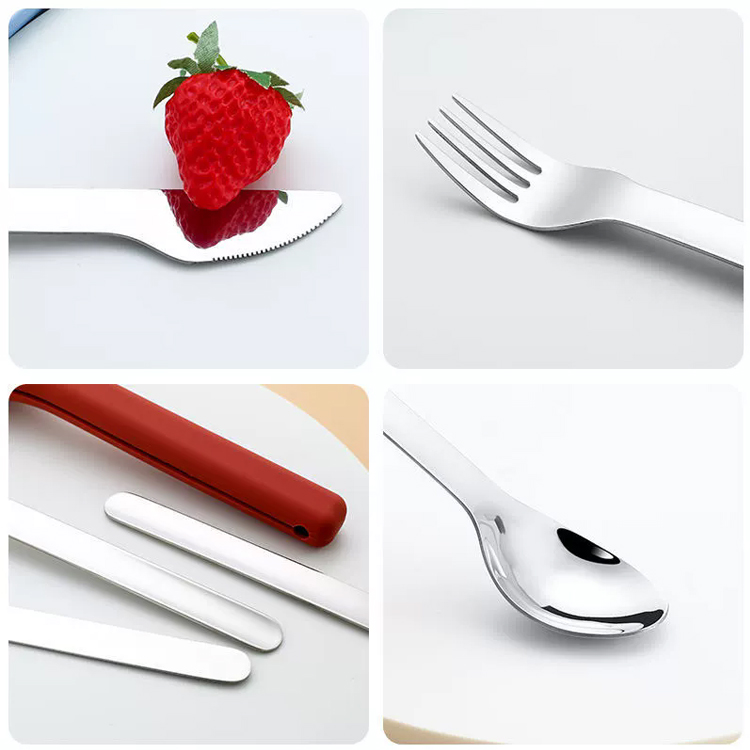 Mataas na kalidad ng camping cutlery set Silicone portable.your premier na kasama sa kainan para sa mga panlabas na pakikipagsapalaran. Ang mataas na kalidad na set ng cutlery ay nagtatampok ng matibay na hindi kinakalawang na asero flatware sa isang proteksiyon na kaso ng silicone. Perpekto para sa kamping, paglalakbay, at piknik, tinitiyak nito ang matikas at kalinisan na kainan kahit saan.