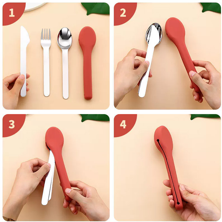 Mataas na kalidad ng paglalakbay sa cutlery ng paglalakbay na Set Silicone Portable