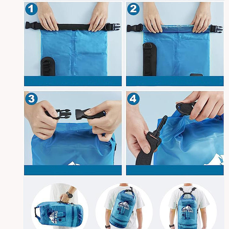 Roll top portable madaling gamitin ang nagdadala ng transparent dry bag.Your makabagong hindi tinatagusan ng tubig na solusyon para sa mga panlabas na pakikipagsapalaran. Ang bagong disenyo ng dry bag na ito ay nagtatampok ng isang transparent roll-top na pagsasara para sa madaling pagkakakilanlan. Sa maraming mga pagpipilian sa laki at portable na pagdadala ng disenyo, perpekto ito para sa paglalakad at iba't ibang mga basang kapaligiran.