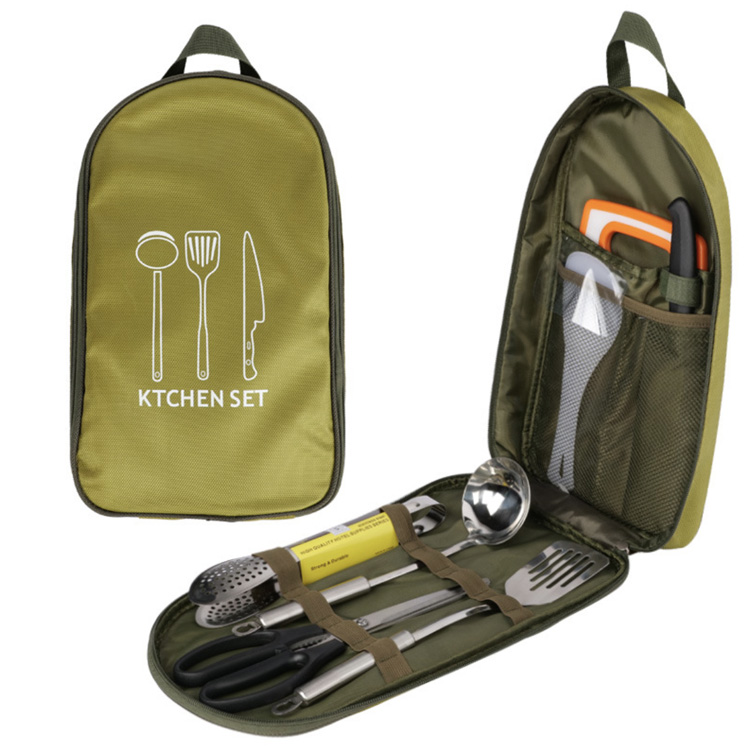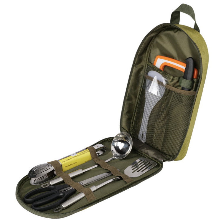 Maramihang mga panloob na bulsa at nababanat na mga loop ay panatilihing ligtas ang lahat ng mga tool, kabilang ang mga kagamitan sa pagluluto, cutlery, at maliit na accessories, na tinitiyak na walang nawala sa pagbiyahe.