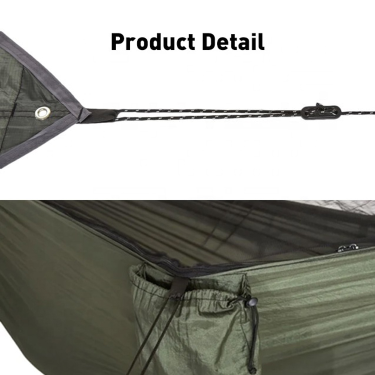 Ultra light swing camping lamok net rain fly hammock.your panghuli all-weather hammock solution para sa mga panlabas na pakikipagsapalaran. Pinagsasama ng ultra-light system na ito ang isang komportableng swing hammock na may integrated mosquito net at proteksiyon na fly fly. Perpekto para sa kamping, tinitiyak nito ang pag-relaks na walang bug at tuyong kaginhawaan sa iba't ibang mga kondisyon.