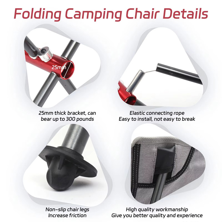 Ultralight Camping Chair Portable Folding Backpacking Chairs.your Ultimate Portable Throne Para sa Panlabas na Adventures. Ang ultralight camping chair na ito ay nagtatampok ng isang compact na natitiklop na disenyo na nag -iimpake sa sarili nitong bag. Ang makabagong mini na hugis ng buwan ay pinagsasama ang higit na kaginhawaan na may kaunting timbang, na ginagawang perpekto para sa backpacking at paglalakbay.
